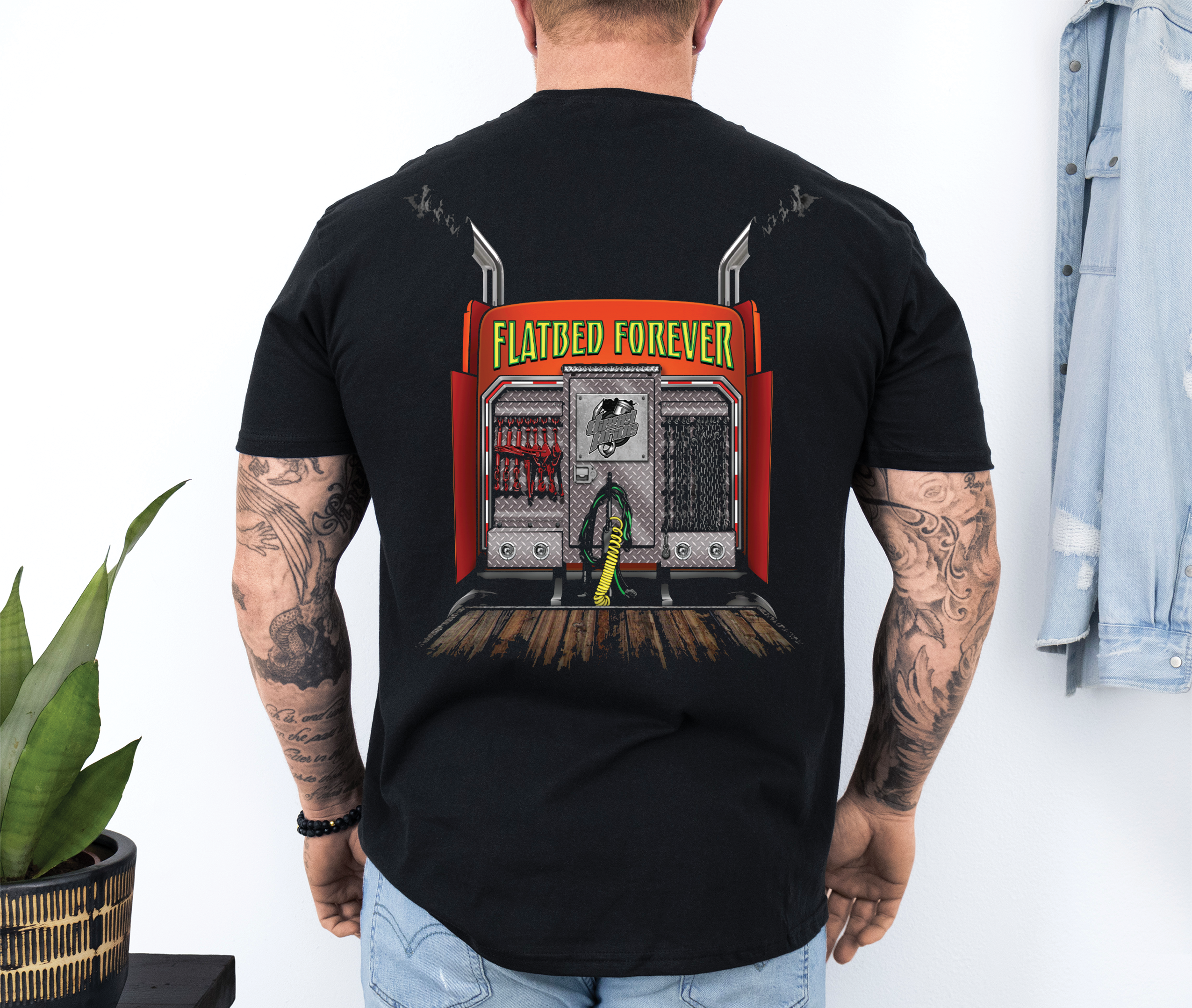 We’ve brought a whole new look to our Flatbed Forever shirt! it’s on a black 50/50 blend short sleeve t-shirt!